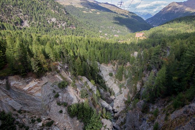 Die letzte Station auf dem Erlebnisweg Plimaschlucht war eine Hängebrücke über die Schlucht – für Jochen hätte sie ruhig ein wenig schaukeln können, Alex war ganz froh, dass sie das nicht tat.