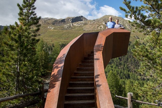 Das zweite spektakuläre Bauwerk nennt sich “Aussichtskanzel” und ist wirklich nur für Schwindelfreie mit starken Nerven geeignet: die Plattform scheint frei über der Schlucht zu schweben – wir konnten nur hoffen, dass der Architekt die Statik ordentlich berechnet hat.