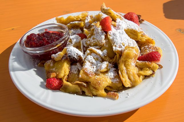 Im Innern der Hütte hingen Fotos vom Hüttenwirt mit Sepp Maier und Reinhold Messner, wir waren also nicht die ersten Spitzensportler, die die Hütte besuchten. Der Hüttenwirt hinter der Theke nahm tiefenentspannt unsere Bestellung entgegen – zwei Sportwasser und einen Kaiserschmarrn – nicht ohne zwischendurch etwas in Vinschgauer Dialekt zu murmeln, das wir beim besten Willen nicht verstehen konnten, wir mussten um Untertitel bitten.