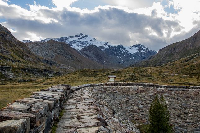 Nach der Stärkung stieg Jochen bis zur alten Staumauer aus dem Jahr 1891 noch ein Stück höher den Berg hinauf. Das Tal hatte immer wieder mit Überschwemmungskatastrophen zu kämpfen – verursacht durch Schmelzwasser im Frühjahr. Daher entschloss man sich, einen Staudamm unterhalb der Gletscher zu bauen, um zukünftige Unglücke zu verhindern und den Abfluss das Wassers zu regulieren. Nachdem sich der Gletscher mittlerweile zurückgezogen und man weiter im Tal einen größeren Stausee gebaut hat, ist die Gefahr von Überschwemmungen mittlerweile gebannt und der alte Staudamm hat keinerlei Funktion mehr.