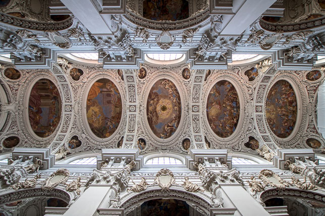 Nächstes barockes Highlight: Der Dom St. Stephan wurde in relativ kurzer Zeit nach dem verheerenden Stadtbrand des Jahres 1662 in den Jahren von 1668 bis 1693 neu errichtet. Die kurze Bauzeit war möglich, da die Architekten auf die noch bestehenden Reste des gotischen Teils zurückgriffen und eine komplett neue barocke Front an der Westfassade errichteten. Für den Wiederaufbau des Doms betraute man den italienischen Architekten Carlo Lurago. So ist es auch nicht verwunderlich, dass die barocke Innenausstattung von italienischen Künstlern übernommen wurde – die Stuckarbeiten wurden von Giovanni Battista Carlone verantwortet, die Fresken malten Carpoforo Tencalla und Carlo Antonio Bussi.