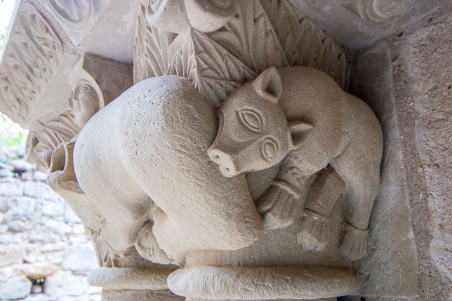 Am Eingang zum Kapitelsaal mit gotischem Kreuzrippengewölbe, das über die ursprünglichen romanischen Rundbögen errichtet wurde, sind weitere eindrucksvolle Steinmetzarbeiten zu bewundern. Dabei handelt es sich allerdings um Nachbildungen. Die Originale befinden sich gleich nebenan, vor Wind und Wetter geschützt, im Eingangsbereich der Kirche St. André.