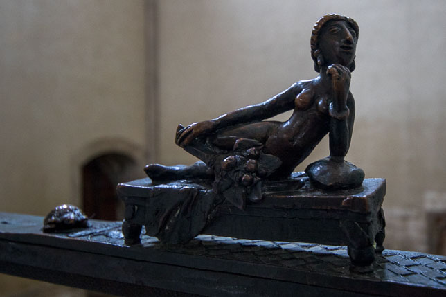 Im Ostchor der Kirche beeindrucken das mittelalterliche Chorgestühl und die riesigen historischen Buchpulte.