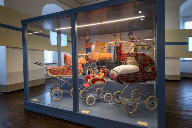Im Anschluss an die Ausstellung der Kinderwagen warfen wir noch einen Blick in die Sonderausstellung Ahoi, kleiner Seemann, die Spielschiffe aus der Sammlung Claude Bernard zeigte und deren Geschichte vermittelte. Nie hätten wir gedacht, dass dieses Kinderspielzeug seinen Ursprung in Holzschuhen mit aufgesetztem Segel hat.