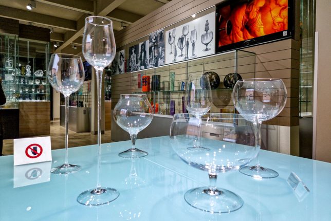 Die Produktion, die damals wie heute in Handarbeit vollzogen wird, schauten wir uns nicht an. Nichtsdestotrotz waren wir von den kostbaren Gläsern im Museum beeindruckt und lauschten via Audioguide der Geschichte des Unternehmens.