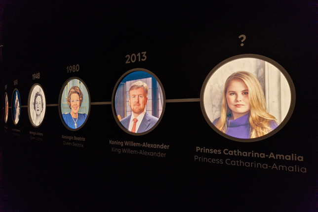Der zweite Teil der Führung führte durch die Gemächer von Königin Wilhelmina, die den Königsthron an ihrem 18. Geburtstag im Jahr 1898 bestieg. Wilhelmina, Urgroßmutter des aktuellen Königs Willem-Alexander, herrschte bis zum Jahr 1948, danach Königin Juliana, bevor Königin Beatrix 1980 das Zepter übernahm. 2013 dankte sie zu Gunsten ihres Sohnes Willem-Alexander (vollständig: Willem-Alexander Claus George Ferdinand, Prinz von Oranien-Nassau, Jonkheer van Amsberg) ab.