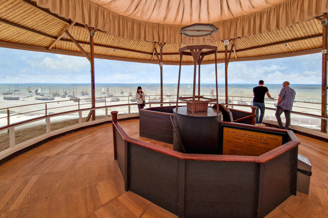 Man betritt das Panorama von unten über eine Treppe und befindet sich unmittelbar in der Mitte des Gemäldes. Die Illusion, am Strand von Scheveningen zu stehen, wird durch Möwengeschrei, das über Lautsprecher ertönt, und dem zwischen Aussichtsplattform und Gemälde angehäuften Sand verstärkt.