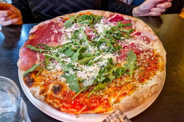 Für das Abendessen war heute mal wieder italienisch angesagt. Im Restaurant La Lanterna hatten wir für 18 Uhr einen Tisch reserviert. Mit Blick durch die Fensterscheibe auf den Dauerregen saßen wir im Warmen und ließen uns die Pizza und Lasagne schmecken.