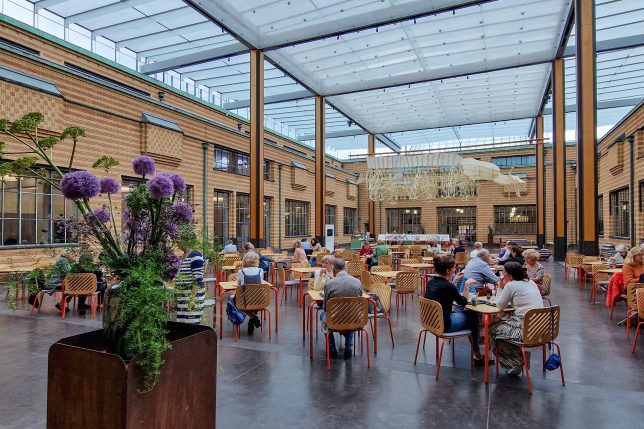 Ein besonderes Kunstwerk hängt in der Decke des Innenhofs, der zugleich die Möglichkeit bietet, bei einem Kaffee die Eindrücke des Museums zu verarbeiten: Die ab 1990 entwickelten Kunstobjekte des Holländers Theo Jansen werden Strandbeester (Strandtiere) genannt. Während die ersten Modelle noch von Menschenhand gezogen werden mussten, bewegen sie sich heute durch die Nutzung von Wind fort. Im Video sind die Kunstwerke allerdings noch beeindruckender als an der Decke des Kunstmuseums. Auch die Simpsons hat Theo Jansen inspiriert.