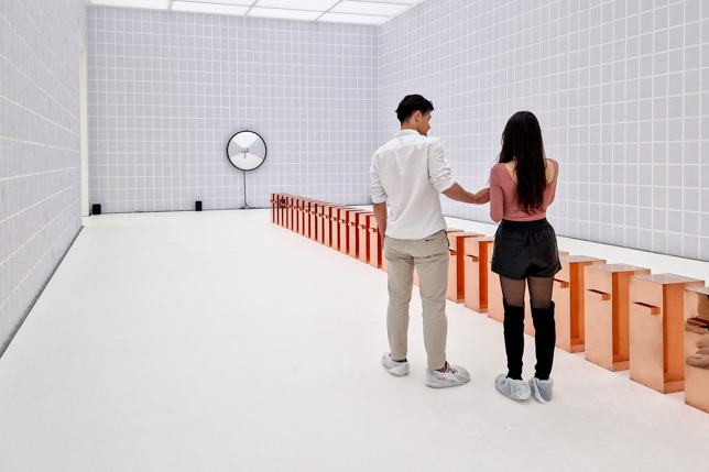 In der Dauerausstellung sind völlig unterschiedlicher Werke zu sehen. In der Installation “Swimming Pool” von Leandro Erlich wähnt sich der Besucher unter der Wasseroberfläche eines Swimmingpools. Ron Mueck schuf unter dem Titel “Couple under an Umbrella” zwei überlebensgroße hyperrealistische Figuren unter einem Sonnenschirm. Durch Richard Serras 216 Tonnen schwere Skulptur “Open Ended” kann der Besucher den Kontrast zwischen eleganten Linien und tonnenschwerem Metall erleben. Maurizio Cattelan errichtete zwei Mini-Aufzüge, die ins Nichts führen.