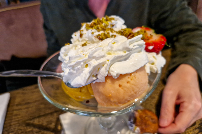 Wir ließen es uns im Restaurant ‘t Goude Hooft im Zentrum von Den Haag gut gehen. Das Restaurant ist das älteste Gasthaus in Den Haag, die Taverne “In tgulde Hoift” wurde bereits im Jahr 1423 erwähnt. Zum Glück wurde es in den letzten 600 Jahren modernisiert und so konnten wir in dem schönen Gastraum unser Abendessen genießen. Die Hauptgerichte mit Fisch und Fleisch waren gut und ließen zum Glück noch Platz für einen süßen Abschluss.
