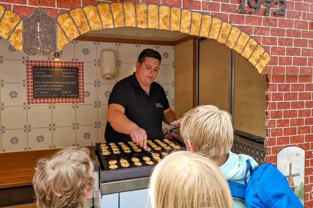 In der Stadt hatten Händler Stände aufgebaut, an denen es Blumenzwiebeln, Käse und vieles Weitere zu kaufen gab. Wir konnten den angebotenen Poffertjes zur Stärkung nicht widerstehen.