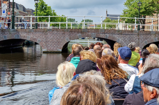 Von Freunden hatten wir bereits gehört, dass eine Bootsfahrt über die Grachten von Alkmaar etwas ganz Spezielles ist, da die Brücken teilweise so tief gebaut sind, dass man sich auf den offenen Booten ducken muss, um sich nicht den Kopf zu stoßen. Und so war der häufigste zu hörende Hinweis unserer Bootsführerin, auf den Kopf zu achten und diesen einzuziehen, wenn es mal wieder unter einer der vielen Brücken durch ging.