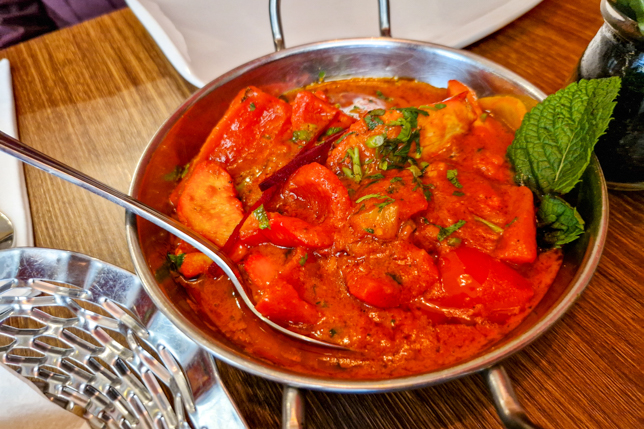 Nachdem wir auch diese Sehenswürdigkeit gesehen hatten, machten wir uns zum frühen Abendessen auf. Alex hatte das indische Lokal Uit India aufgetan. Um halb fünf waren wir die ersten Gäste im Lokal, durften am schönsten Tisch direkt am Schaufenster Platz nehmen und genossen das wirklich gute Essen.