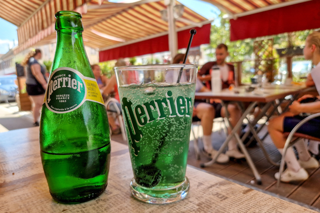 Nach dem Museum spazierten wir zur Porte de Colmar, wechselten auf die Außenseite der Festungsmauern, gingen durch den Festungsgraben zur Porte de Strasbourg und wieder hinein in die Stadt, um in der Nähe des zentralen Platzes in der Stadt in der Pâtisserie Birké eine kleine Erfrischung in Form eines Perrier menthe (Perrier mit Minzsirup) zu genießen.
