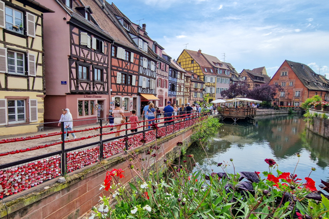 Anschließend fuhren wir nach Colmar, checkten in unserem Hotel ein und erkundeten die Stadt ein wenig zu Fuß. Auf dem Weg vom Hotel in die Altstadt sahen wir nahezu keine Touristen, was sich jedoch schlagartig änderte, als wir die erste Brücke über die Lauch erreichten. Hier im äußerst pittoresken Krutenau-Viertel, auch Klein-Venedig genannt, standen etliche Besucher und lichteten die wunderschöne Kulisse der alten Fachwerkhäuser ab oder ließen Bilder von sich mit dem herrlichen Hintergrund machen. Auch wir stellten uns ans Geländer und hielten die Szenerie mit dem Smartphone fest.