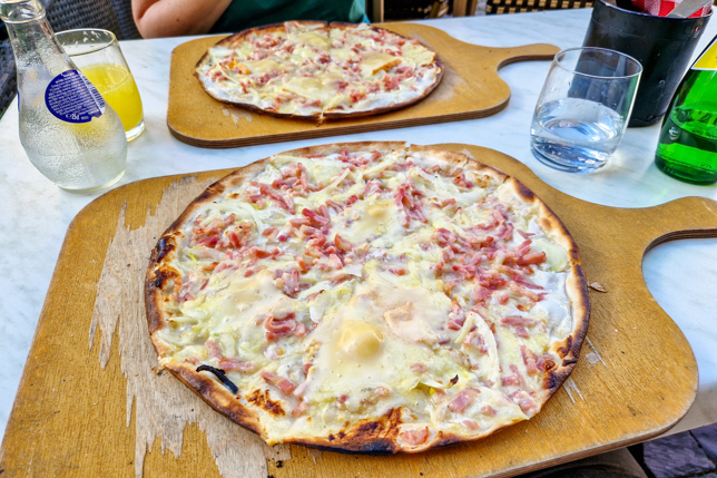 So war es für uns gar nicht so einfach, einen Platz in einem der Restaurants zu finden. In der “Winstub La Taverne Alsacienne” fanden wir letztendlich einen freien Tisch und ließen uns Flammkuchen mit Munster bzw. Raclette schmecken.