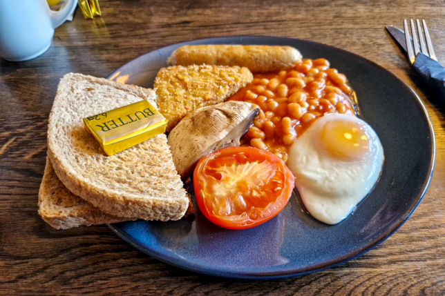 Heute standen zwei Stunden Fahrt entlang der walisischen Südküste mit einem ausgiebigen Spaziergang auf der Halbinsel Gower und der Besichtigung des National Botanical Garden of Wales auf dem Programm. Als Stärkung verspeisten wir ein ordentliches walisisches Frühstück, das uns sicherlich bis zum späten Abend satt machen sollte.