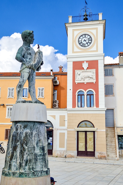 Wir gingen zum zentralen Marsala Tita Platz, auf dem ein venezianischer Turm von der Herrschaft Venedigs über große Teile Istriens zeugt, die erst 1797 mit dem Fall Venedigs endete und in dessen Folge Istrien unter die Kontrolle der Habsburger Monarchie gelangte.