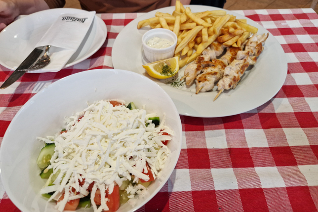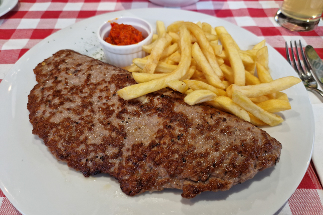 Am Freitag gleiches Wetter, wir verließen nur zum Abendessen das Haus: Die Taverne Konoba Kafana hätten wir eigentlich auch zu Fuß erreichen können, aber der Regen und die Schnellstraße, die die beiden Ortsteile von Rovinjsko Selo trennt, luden nicht gerade dazu ein. Fazit des Restaurantbesuchs: Wenn wir das nächste Mal Lust auf Grillspezialitäten verspüren, gehen wir besser zum Kroaten unserer Wahl in Deutschland, denn die Bewertung von 4,8 Sternen bei Google entsprach nicht dem, was wir auf unserem Teller hatten.