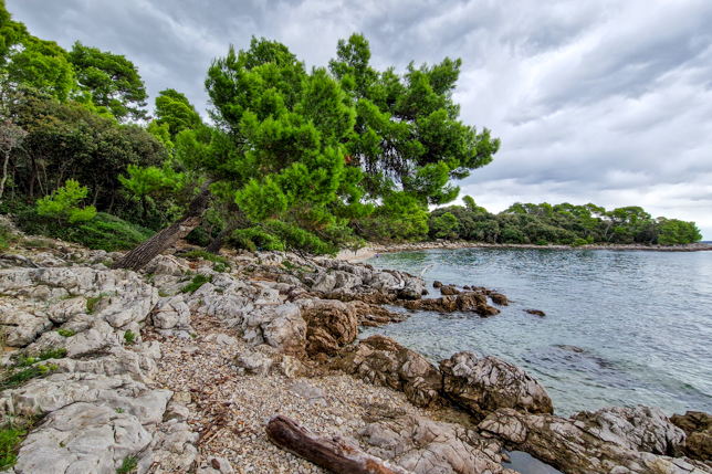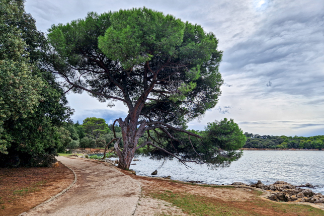 Der Ärger musste bei Jochen raus und da zumindest für die kommenden beiden Stunden kein Regen angekündigt war, fuhr er zum Parkwald Zlatni rt (zum Glück fand das Navi den Parkplatz auch ohne den komplizierten Namen eintippen zu müssen) an der Küste südlich von Rovinj und spazierte die vier Kilometer rund um die kleine Halbinsel.