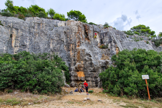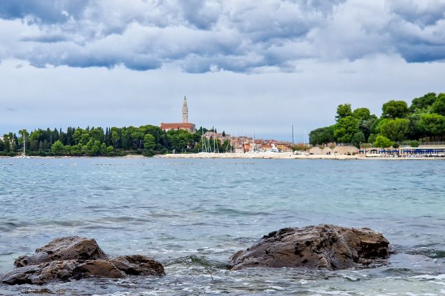 Es waren ein paar unverzagte Badende im Wasser oder saßen in einer der wunderschönen Badebuchten – aber sicher kein Vergleich mit dem Andrang, der hier noch vor ein paar Tagen bei Sonnenschein und schweißtreibenden Temperaturen geherrscht haben muss. Von der Nordseite der Halbinsel ging der Blick hinüber zur Altstadt Rovinj mit der Kirche der Hl. Euphemia auf der Spitze. Die schroffen und glatten Felsen der Halbinsel lockten Kletterer an, die heute sicherlich ganz froh über die für ihren Sport angenehmen Temperaturen waren.