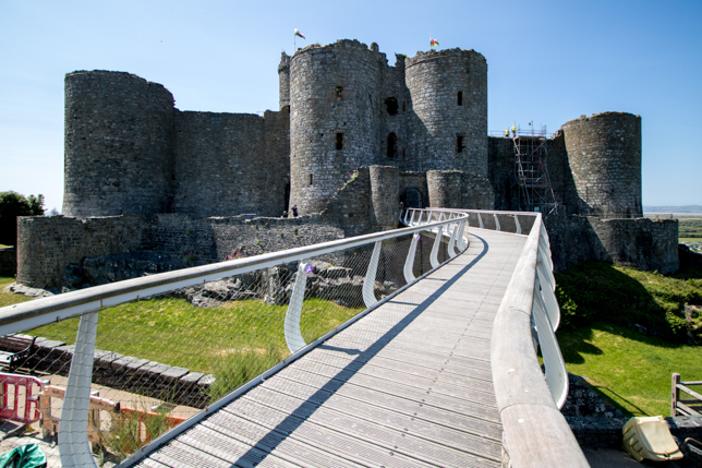 Harlech Castle, eine von vier Burgen, die mittlerweile zum Weltkulturerbe der UNESCO zählen, entstand so in lediglich sechs Jahren. Im Wettbewerb mit den anderen Burgen beeindruckt insbesondere die Lage auf einem steilen Felsvorsprung mit weitem Blick über die Dünen und das Meer. Ursprünglich direkt am Meer gelegen, konnte die Burg bei Belagerung vom Meer aus versorgt werden. Heute ist es für Touristen deutlich leichter, die Burg über eine Besucherbrücke zu “erobern”.
