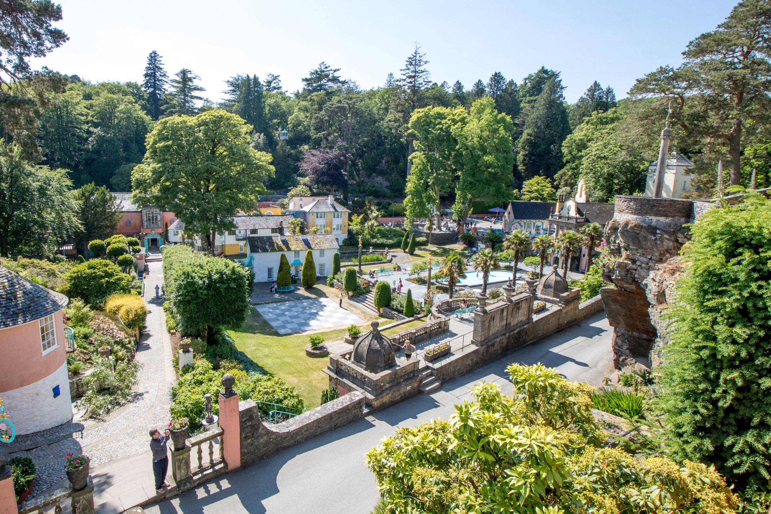 Von Harlech Castle waren es nur ca. 20 Minuten bis zum Highlight des heutigen Tages: Portmeirion. Bei entsprechendem Wetter fühlt sich der Besucher nach Italien versetzt. Das Dorf entstand nach den Plänen des walisischen Architekten Sir Clough Williams-Ellis ab Beginn des 20. Jahrhunderts in zwei Phasen: Von 1926 bis 1939 und von 1954 bis 1976. Zu diesem Zeitpunkt war Clough Williams-Ellis bereits über 90 Jahre alt. Da es im 20. Jahrhundert lange Zeit nicht so einfach war, von der Insel nach Italien zu gelangen, entstand “Italien in Kleinformat” an der walisischen Küste: Hier erholten sich in den Folgejahren Film- und Literaturgrößen. Später kamen Teile der Beatles hierher, ihr Manager Brian Epstein bekam sogar eine eigene Unterkunft im Anbau des Gate House.