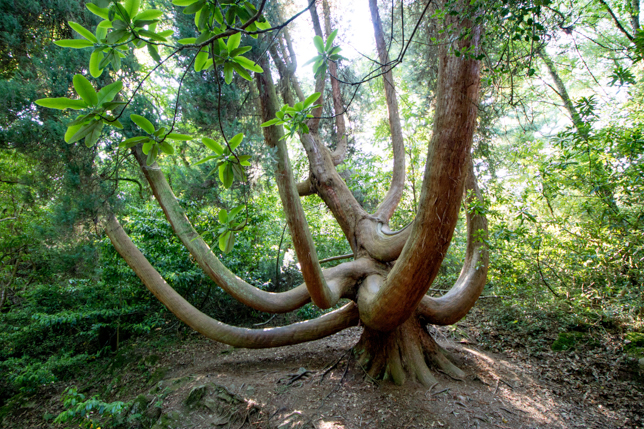 Rund um das Dorf lädt ein zehn Hektar großes Waldgebiet zum Spazieren und Staunen ein. Trampelpfade führen über das Gelände und laden Besucher dazu ein, exotische Pflanzen und Bäume sowie einen Hundefriedhof zu entdecken, auf dem die vierbeinigen Bewohner von Portmeirion beerdigt wurden.