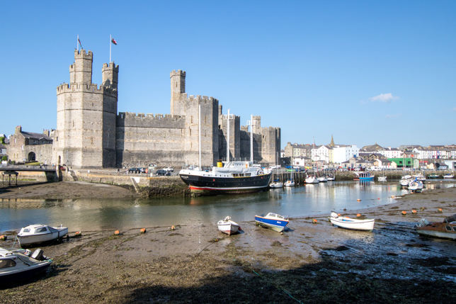 Nach dem Besuch des Schiefermuseums machten wir uns auf den Weg nach Caernarfon, wo die gewaltige Burganlage von Caernarfon Castle, errichtet von König Eduard I. von England an der Mündung des Flusses Seiont, die Silhouette der Kleinstadt dominiert. Die Burg sollte nach dem Sieg der Engländer über die Waliser der Sitz der englischen Grafschaft Gwynedd werden. Hier wurde Eduard II. von England. geboren, der als erster Thronfolger den Titel Prince of Wales trug.