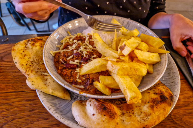 Nach einem ereignisreichen Tag wartete in Llanrwst im Restaurant Tir a Mor unser Abendessen auf uns, ausnahmsweise mal keine italienische oder indische, sondern englische Küche mit Fisch, Chili con Carne – und einem leckeren Cider.