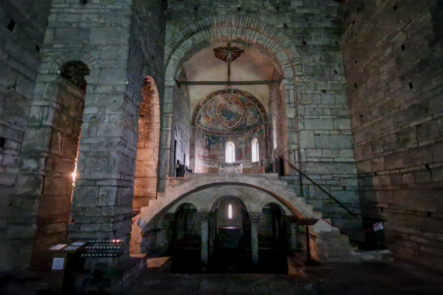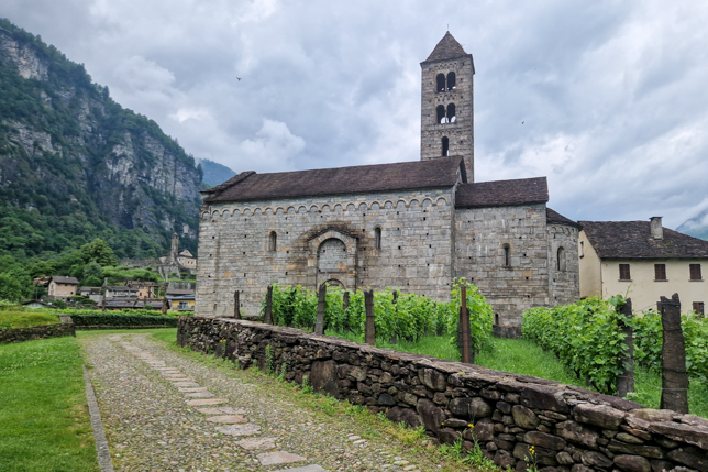 Wieder im Tal angekommen, liegt ungefähr auf halbem Weg von der Passhöhe zum Lago Maggiore das kleine Örtchen Giornico, das bei einer Einwohnerzahl von rund 800 Einwohnern eine ungewöhnlich hohe Dichte von Kirchen aufweist. Insgesamt sieben Kirchen prägen die Silhouette des Dorfes, die bekannteste davon ist die um 1150 entstandene Kirche San Nicolao im Stil der lombarischen Romanik, die dem Heiligen Nikolaus von Myra geweiht ist. Die Mauern aus behauenen Granitsteinen beherbergen im Innern spätgotische Wandmalereien.