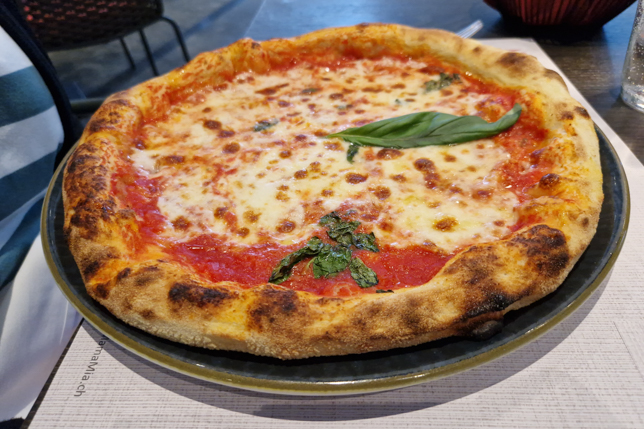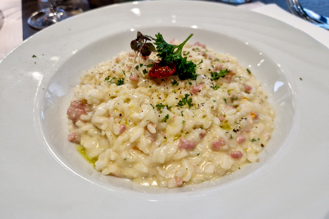 Wir waren noch vor 18 Uhr unterwegs und hatten daher kein Problem, einen Platz auf der Terrasse des Restaurants Mamma Mia zu ergattern, eine halbe Stunde später waren die Außenplätze alle vergeben. Freundlicher, perfekter Service, sehr gute Pizza und Risotto und ein Gläschen Wein – ein Hoch auf Italien, ups stimmt ja gar nicht, wir befinden uns immer noch in der Schweiz, auch wenn es sich anders anfühlt.