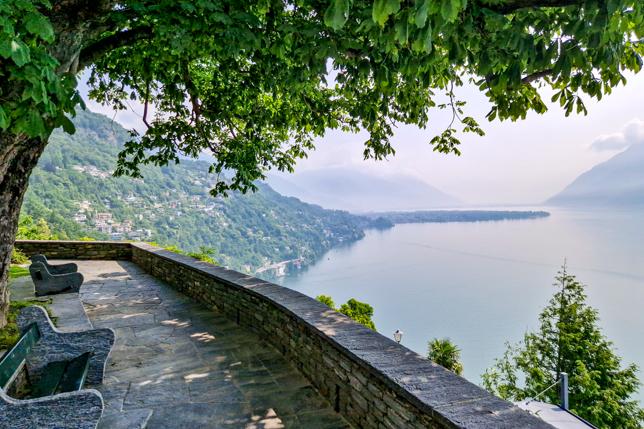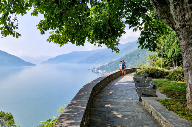 Auf dem Weg nach Süden bietet Ronco sopra Ascona, dessen Dorfzentrum 160m über dem See liegt, einen schönen Ausblick. Lediglich die hohe Luftfeuchtigkeit und der damit verbundenen Dunst, der uns voraussichtlich auch in den kommenden Tagen erhalten bleiben wird, verringerte ein wenig den Durchblick. Der Idylle wurde lediglich durch einige permanent herumfliegende Hubschrauber gestört, die im steilen Gelände Totholz entsorgten oder Material für Baustellen herbeischafften.