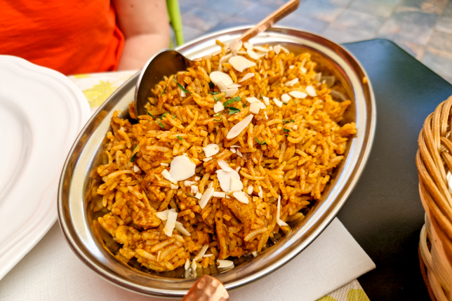 Da wir in Baveno frühestens um 15 Uhr in unsere Ferienwohnung einchecken durften, nutzten wir die Zeit für ein Mittagessen. Wir entschieden uns für indische Küche, 10 Tage lang nur italienische Pizza oder Pasta sind auf Dauer etwas eintönig. Das Essen in Verbania im Kashmir Indian Restaurant war gut, die Aussicht auf eine Baustelle vor der Terrasse allerdings weniger – zum Glück hielten die Bauarbeiter den Beginn ihrer Mittagspause um 12 Uhr pünktlich ein. Wofür man allerdings drei Köche für zwei Gäste benötigt, war uns nicht klar, aber letztendlich auch egal.