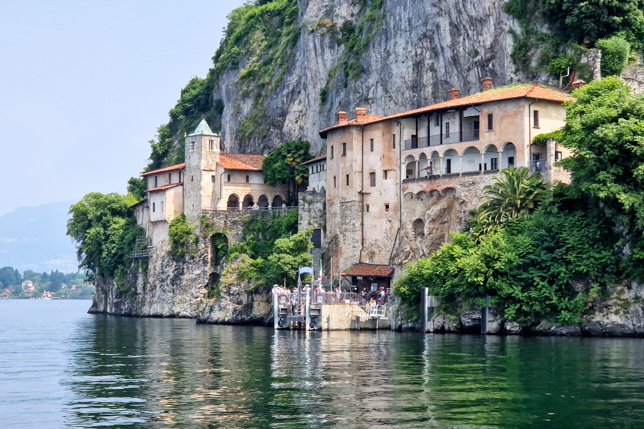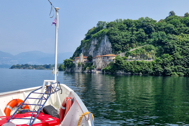 Nach 30 Minuten und kurzem Zwischenstopp auf der gegenüberliegenden Seeseite am Wallfahrtskloster Santa Caterina del Sasso erreichte das Ausflugsboot pünktlich Stresa.