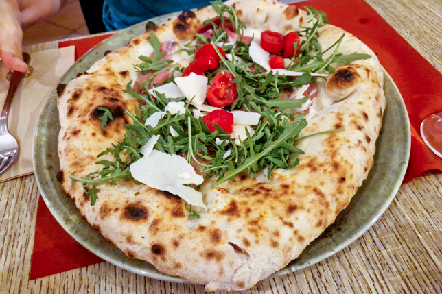 Zum Abendessen stand wieder Stresa auf dem Programm: Die Taverna del Pappagallo servierte uns eine gute Pizza sowie ebenso gute selbstgemachte Bandnudeln mit Bolognese (auch wenn für Italien typisch die Portion eher einer Vorspeise entsprach) – waren wir doch froh, ohne vorherige Reservierung überhaupt noch einen Platz bekommen zu haben. Gäste ohne Reservierung nach uns wurden abgewiesen und auf nach 20 Uhr vertröstet.