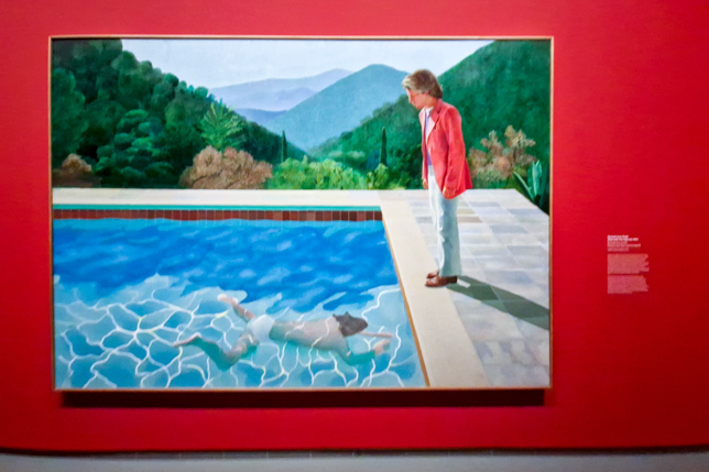 Die folgenden Gemälde stammen aus der Zeit ab 1964, als sich David Hockney nach Abschluss seines Studiums in London in Kalifornien niederließ: