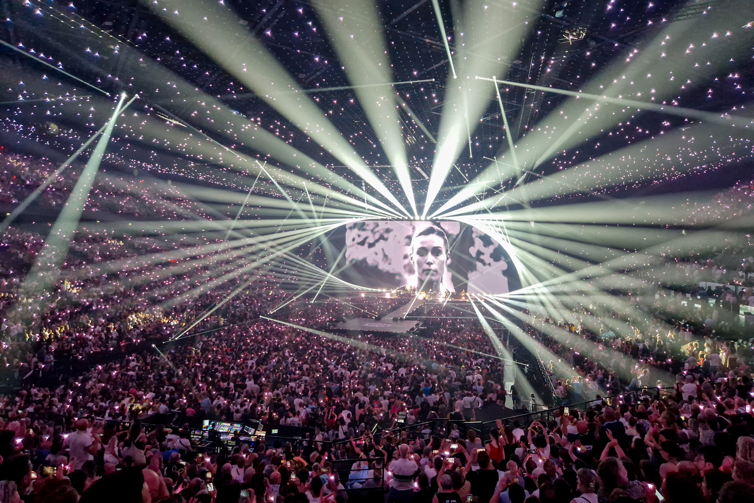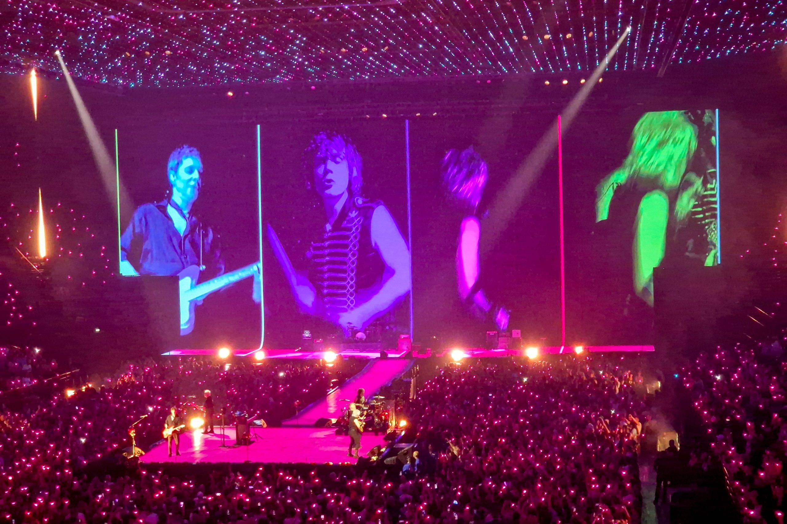 Unwissend in Bezug auf die Temperatur in der Halle richteten wir uns mit kurzen Hosen und T-Shirts auf einen schweißtreibenden Abend ein und waren überrascht, dass die Halle beim Betreten auf gefühlt unter 20 Grad heruntergekühlt war. Indochine hatte also den klaren Auftrag, ihren Fans ordentlich einzuheizen.
