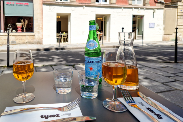 Nach dem Besuch der Galerie reichte unser Appetit schon für einen Besuch der Crêperie/Austernbar Tycoz Statt Austern – die Chance, diese zu probieren, hatten wir bereits bei unserem Urlaub in der Bretagne ungenutzt verstreichen lassen – ließen wir uns auf dem schattigen Trottoir Galettes schmecken und genossen einen Cidre dazu. Die Bedienung, die alle Speisen und Getränke durch die Hitze über die Straße bringen musste, tat uns ein bisschen leid, was wir aber mit Trinkgeld versuchten gutzumachen.