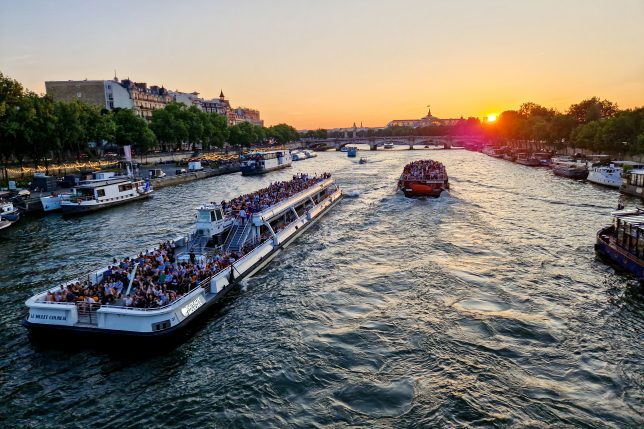 Die Idee, nach dem Verlassen des Museums entlang der Seine bis zum Eiffelturm zu spazieren, entpuppte sich im Nachhinein als schlecht, aber zumindest der Start bescherte uns bei herrlich milden Abendtemperaturen und der langsam untergehenden Sonne wunderschöne Motive. Auf dem Weg zum Platz Trocadéro auf der dem Eiffelturm gegenüberliegenden Seineseite sahen wir unzählige Ausflugsschiffe, auf deren Decks sich Massen an Touristen den Sonnenuntergang anschauen wollten.