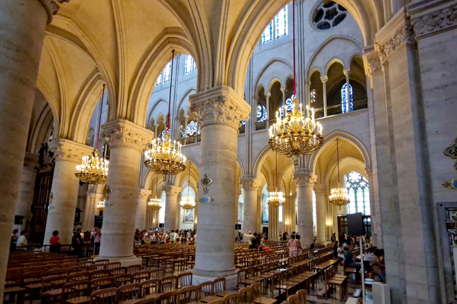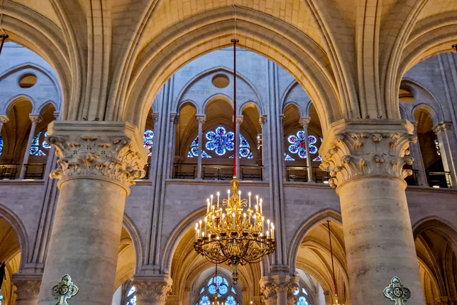 Leider haben wir von unserem letzten Besuch der Kathedrale im Jahr 2007 keine Fotos, um den Zustand der Kirche vor und nach der Renovierung vergleichen zu können – wir erinnern uns lediglich, dass es im Innern im Vergleich zu heute eher düster war. Ungewöhnlich für deutsche Kirchenbesucher ist sicherlich, dass in den Kapellen wertvolle Kunstwerke hängen, unter anderem zwei Teppiche von Henri Matisse, die am Tag des Brandes gedankenschnell von Helfern aus der Kirche gerettet wurden.