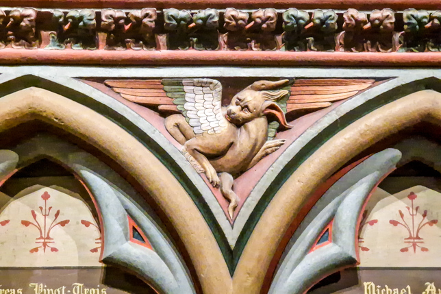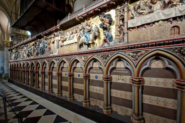 Rund um die Chorschranke findet sich ein aufwendiger Bilderzyklus (auch an diesen erinnerten wir uns nicht mehr), der zwischen 1300 und 1350 entstand. Im nördlichen Umgang ist das Leben Jesu von der Kindheit bis zum Tod dargestellt, im südlichen zeigt er neun Szenen mit Erscheinungen des Auferstandenen Jesus.