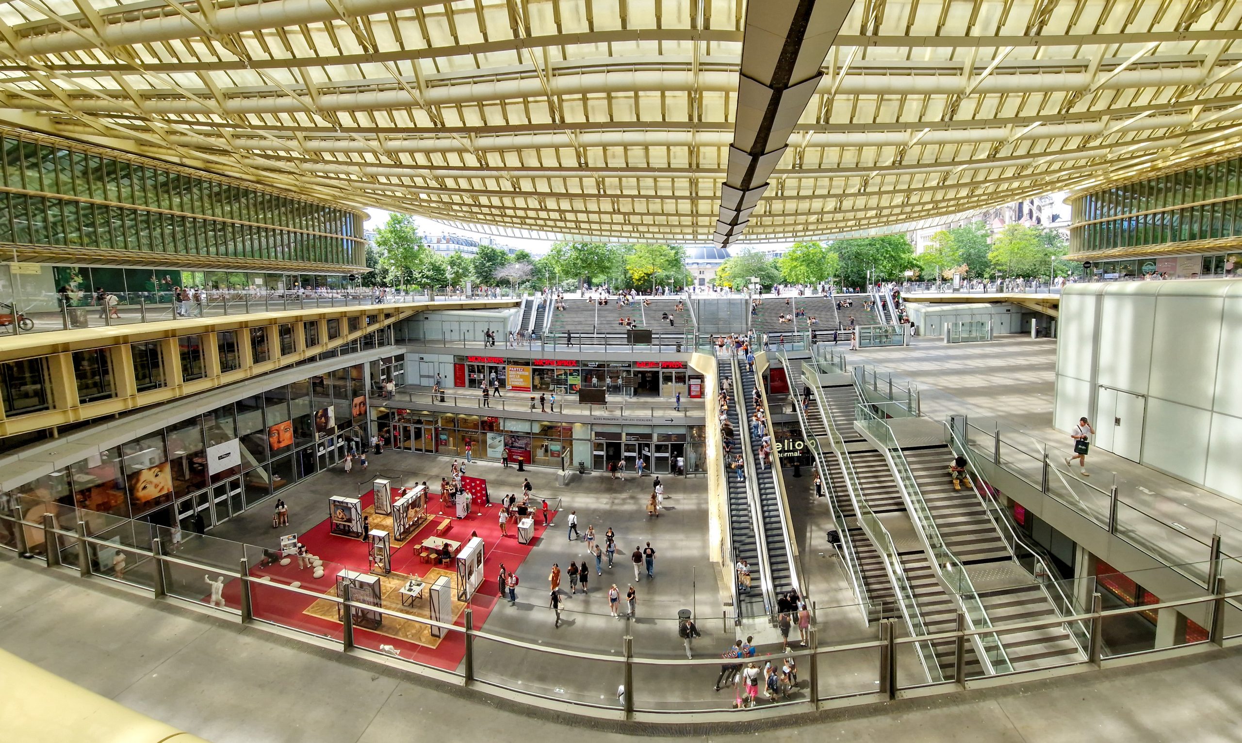 Nur wenige Meter entfernt findet sich Les Halles, wo bis Anfang der 1970er Jahre die Hallen des Großhandelsmarkts von Paris standen. Oberirdisch ist davon heute nichts mehr zu sehen, die Einkaufsmöglichkeiten wurden in den Untergrund verlagert. Es entstand ein riesiges unterirdisches Einkaufszentrum, Schwimmbad, Kino und Kulturzentrum sowie unter dem Komplex der Bahnhof Châtelet – Les Halles, der größte unterirdische Bahnhof der Welt, ein zentraler Umsteigepunkt für fünf Metrolinien mit Zugang zu den Nahverkehrszügen der RER.