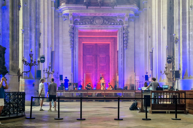 Saint-Eustache ist berühmt für ihre große Orgel – sogar die größte Frankreichs – aus dem Jahr 1989, die in das Gehäuse aus dem Jahr 1854 eingebaut wurde. Heute musste sie jedoch stumm bleiben, eine Teilnehmerin des am Wochenende stattfindenden Festival 36h probte ihre Songs für den Auftritt am Abend. So kamen wir in den Genuss der beeindruckenden Akustik – der für die Atmosphäre des Konzerts produzierte Nebel machte die einfallenden nachmittäglichen Sonnenstrahlen wunderschön sichtbar und sorgte so für eine fantastische Atmosphäre.