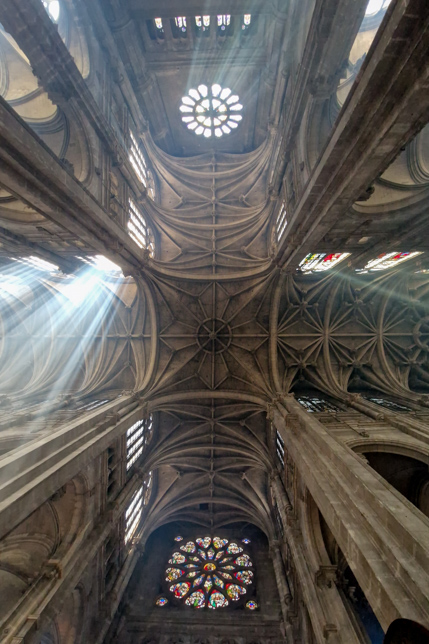 Beeindruckend sind die Rosettenfenster im südlichen und nördlichen Querhaus aus dem 13. Jahrhundert. Das südliche gehört mit 12,9 Metern zu einem der größten Europas. Christus ist umgeben von Aposteln, Märtyrern sowie den klugen und den törichten Jungfrauen aus der Matthäusgeschichte.