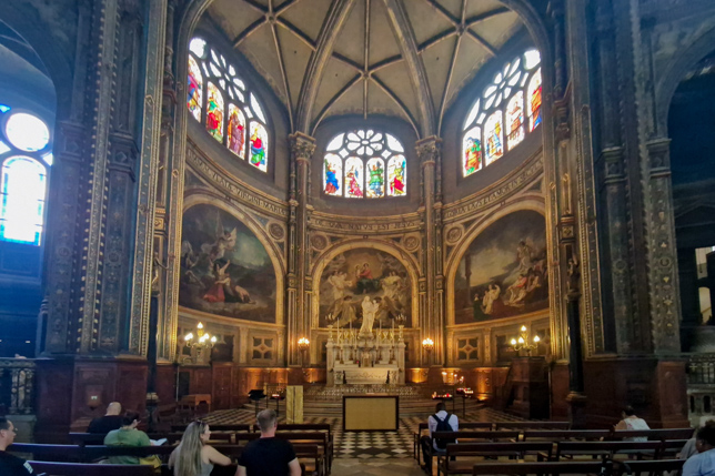 Wie so oft lohnte ein Blick nach oben in das 33,5 m hohe Gewölbe der Kirche und in die mit wertvollen Kunstwerken ausgestattete Seitenkapellen. Hier finden sich beeindruckende Kunstwerke vom Grabmal Jean-Baptiste Colberts, des erfolgreichen Finanzministers unter dem „Sonnenkönig“ Ludwig XIV. aus dem 17. Jahrhundert, bis zu einem Werk von Keith Haring mit dem Titel “Life of Christ” (1990).