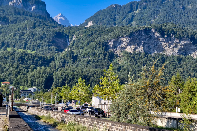 Der Espresso bei McDonalds war mit 3,30 CHF teurer als bei uns, aber immer noch günstiger als gestern Abend im Restaurant zu 4,50 CHF. Vom Busbahnhof in Interlaken West fuhr ich nach dem Essen zurück nach Wilderswil. Mein Zimmer unter dem Hoteldach hatte sich trotz Abschottung gegen die Sonne aufgeheizt, aber nach einer erfrischenden Dusche und dem Öffnen der Fenster ließ es sich gut aushalten.