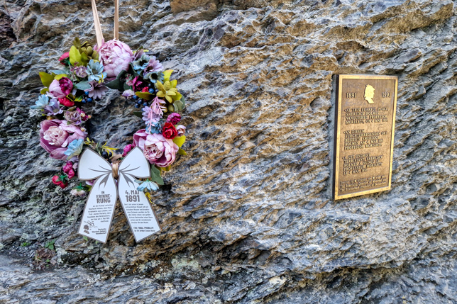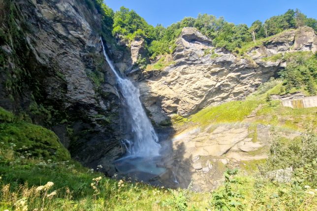 Nach durchaus schweißtreibendem Fußmarsch endete ein kleiner Pfad vor einem Zaun auf Höhe der Mitte des Wasserfalls und markierte die Stelle, an der Holmes seinen Kampf mit Moriarty führte. Eine Gedenktafel erinnert an das finale Aufeinandertreffen. Das Wasser schießt hier 120m in die Tiefe, der entstehende Wassernebel erzeugt bei Sonnenschein einen immerwährenden Regenbogen.