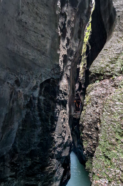Während ich die Schlucht von Ost nach West über Stege, Planken und durch Tunnel durchquerte, kam mir der Großteil der Besucher mit Hund und Kinderwagen entgegen, um später nach Durchschreiten der Schlucht vom Osteingang mit dem Bus zum Parkplatz am Westeingang zurückzufahren. Tief unten herrschten sehr angenehme Temperaturen, an die man sich hätte gewöhnen können, doch gleich nach Verlassen der Schlucht am westlichen Ausgang schnellte das Thermometer wieder in die Höhe.